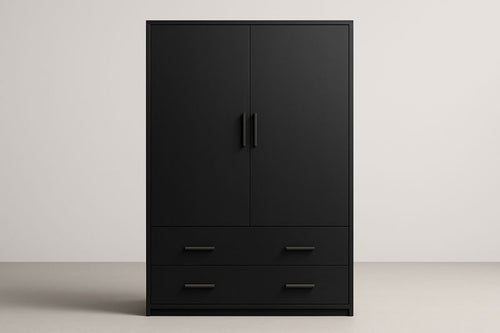 Lit double en bois noir avec tête de lit 140x200 cm -